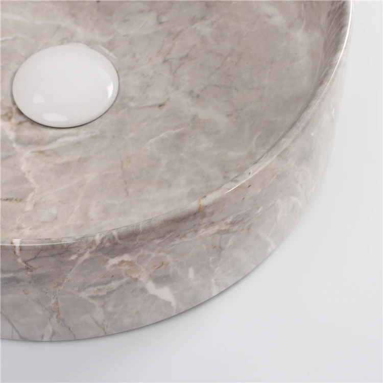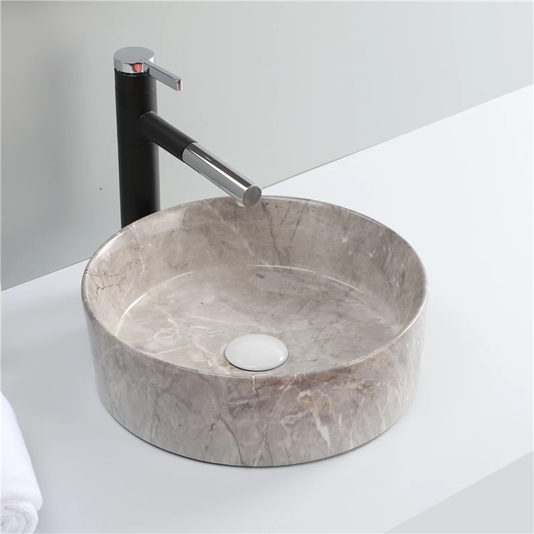 Hot Sale Ceramic Luxury Decorative Cultured Marble Counter Top Lavatory Art Wash Basin Round Sink