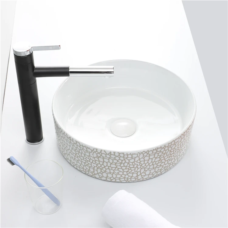 Home Bathroom Products,Sinks Wash Basin Chaozhou City Chao'an District Dengtang Town, Hengmei Ceramic Factory Top 10 Hot Sale Round Silver Plated Washbasin Sink Bathroom Ceramic Art Basin Sink