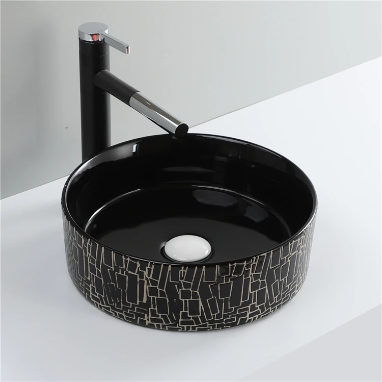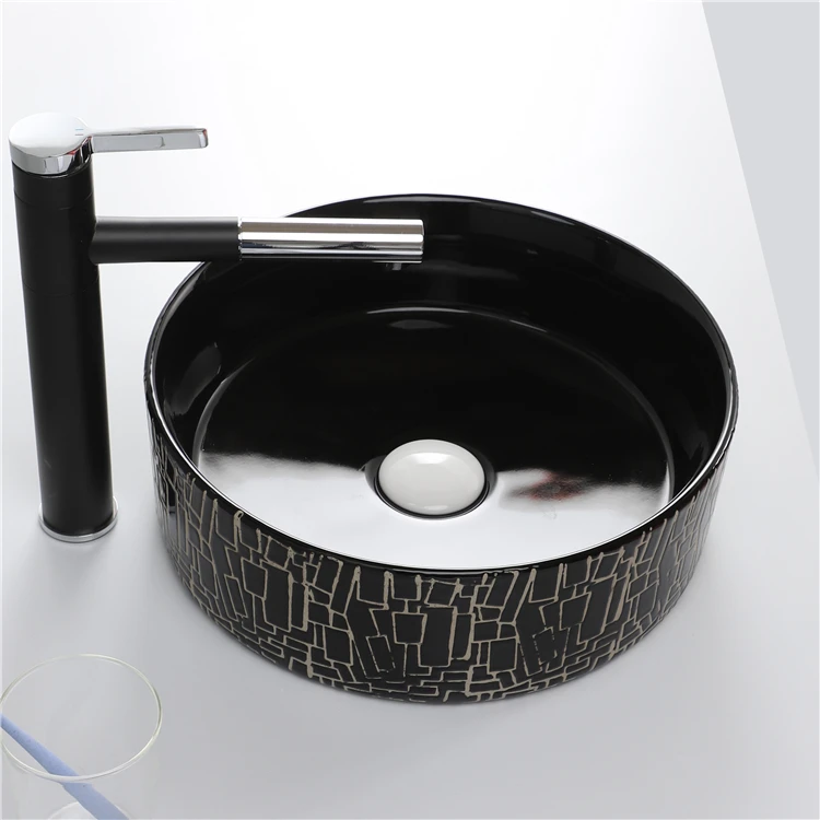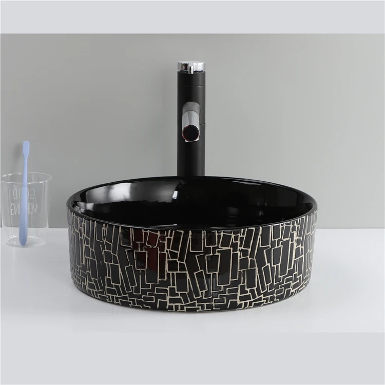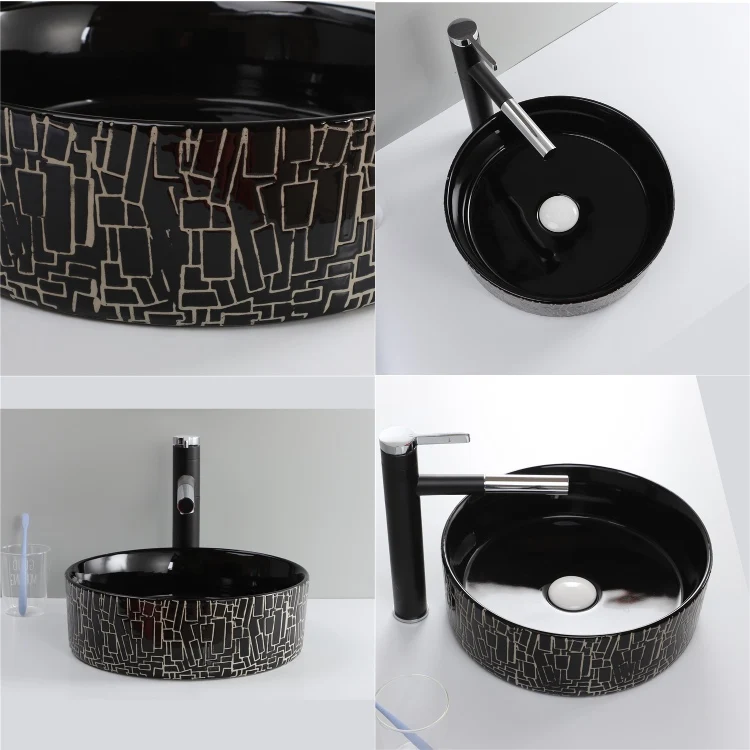 Home Bathroom Products,Sinks Wash Basin Chaozhou City Chao'an District Dengtang Town, Hengmei Ceramic Factory Hot Sale Fashion Style Black Color Art Wash Hand Basin Sink Bathroom Hotel