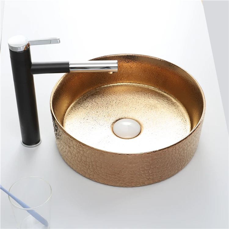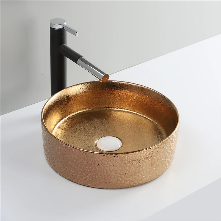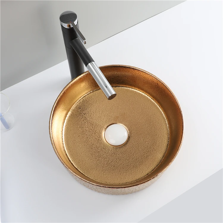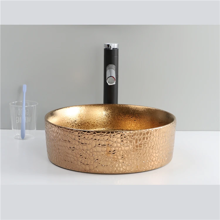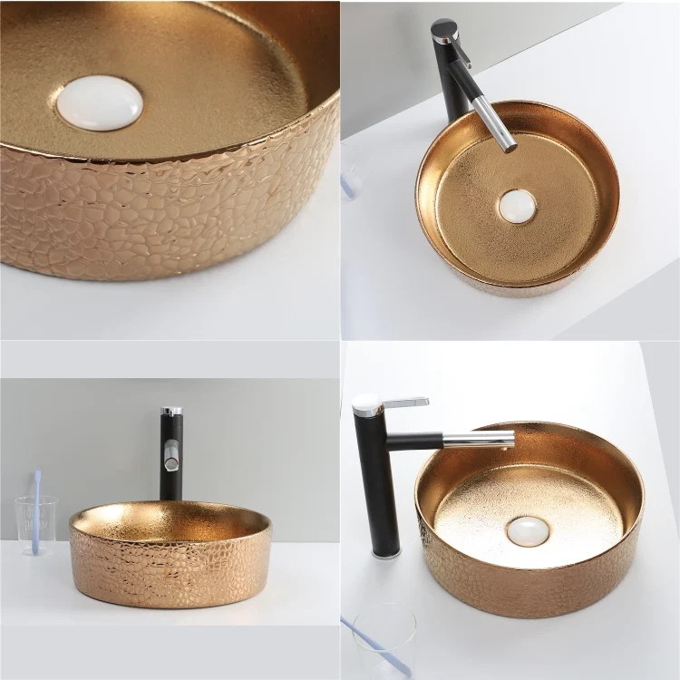 Home Bathroom Products,Sinks Wash Basin Chaozhou City Chao'an District Dengtang Town, Hengmei Ceramic Factory Cheap New Model Round Ceramic Counter top Rose Golden Color Bathroom Wash Basin