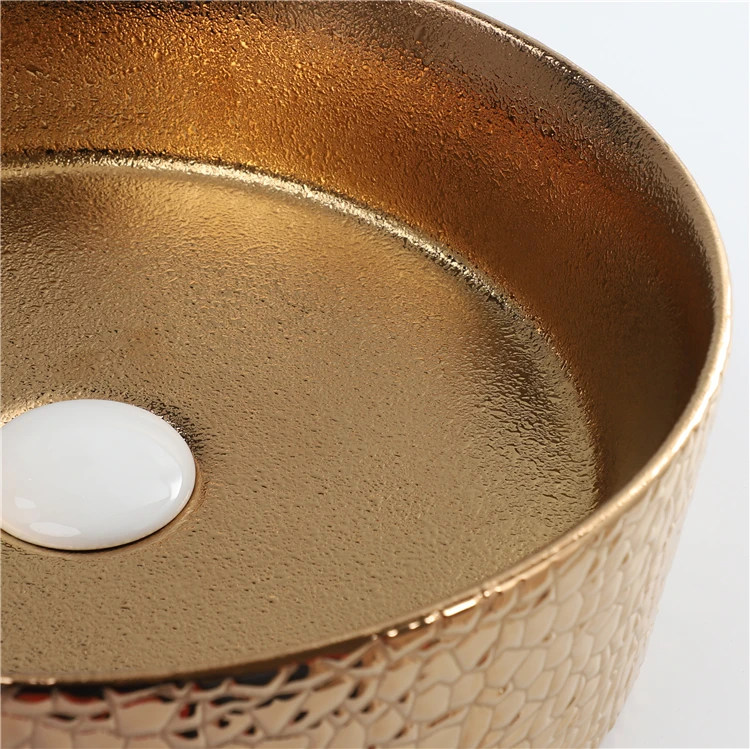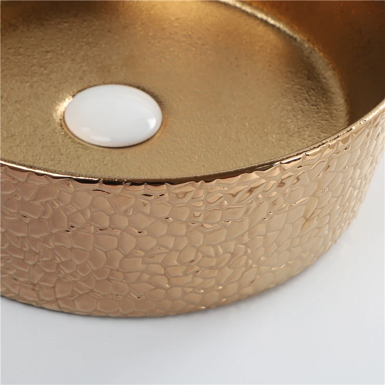 Cheap New Model Round Ceramic Counter top Rose Golden Color Bathroom Wash Basin