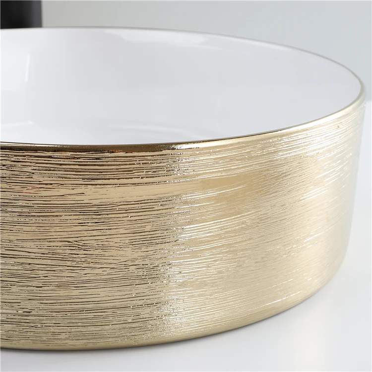 Hot Sale Sink Glossy White And Gold Countertop Lavabo Modern Luxury Ceramic Bathroom Wash Hand Round Shape Art Basin