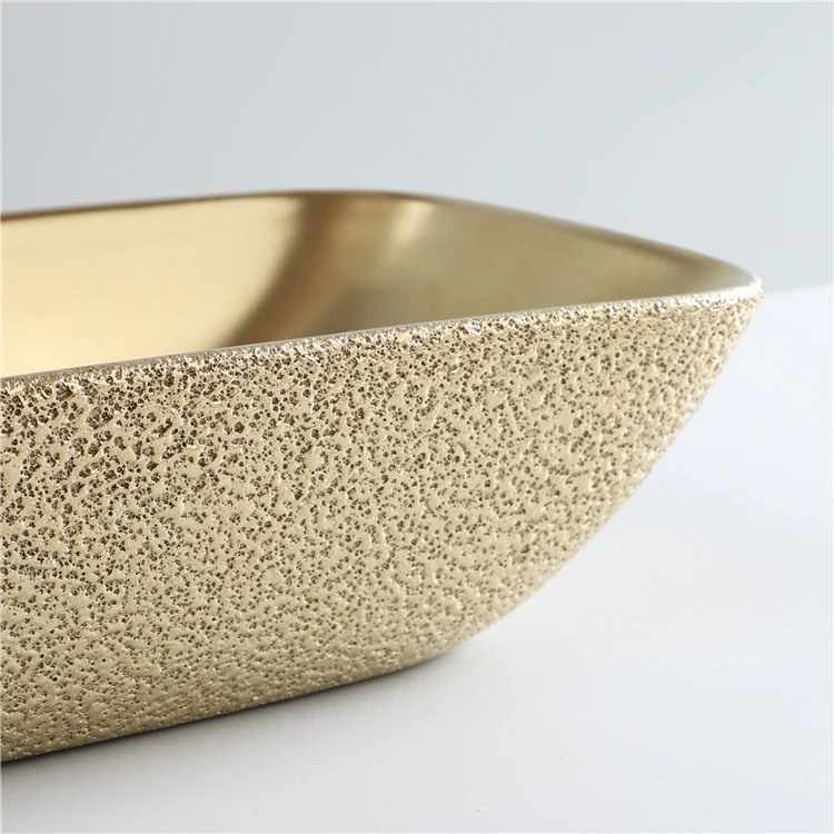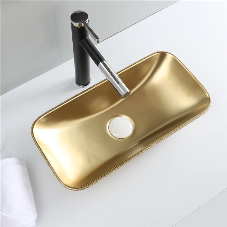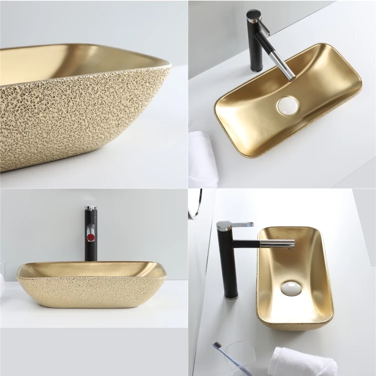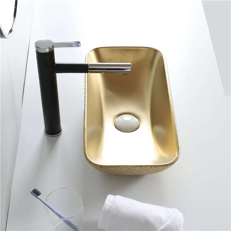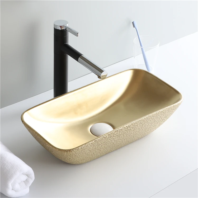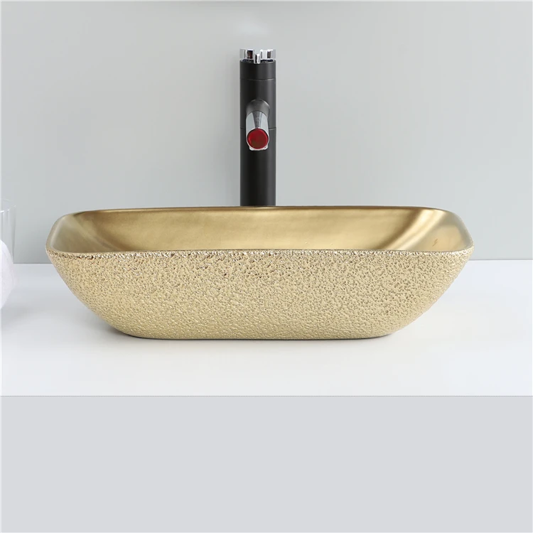 OEM Rectangle Counter Top Gold Bathrooms Basins Hotel Wash Basin Sink Ceramic