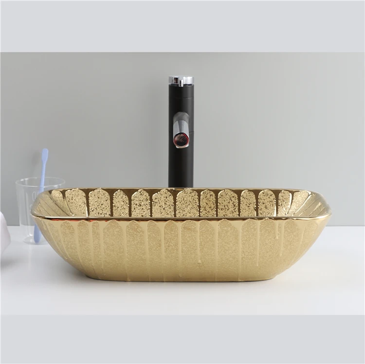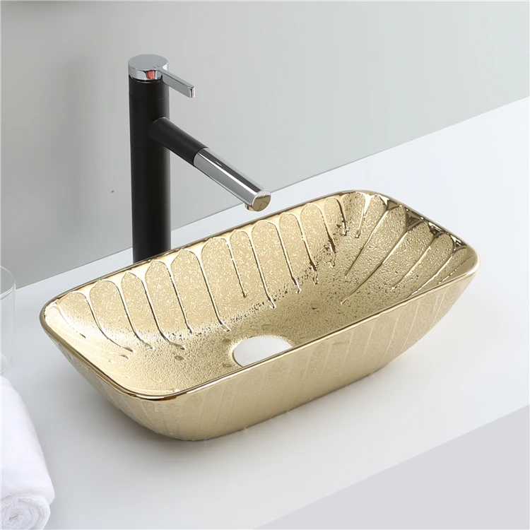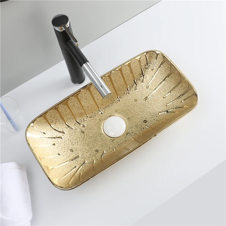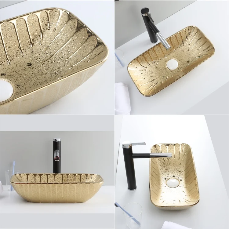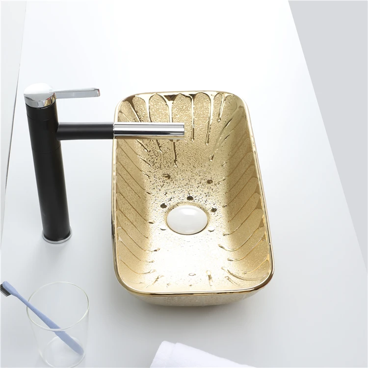 Home Bathroom Products,Sinks Wash Basin Chaozhou City Chao'an District Dengtang Town, Hengmei Ceramic Factory Special Design 3D Golden Small Modern Bathroom Countertop Sink Art Wash Basin
