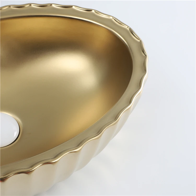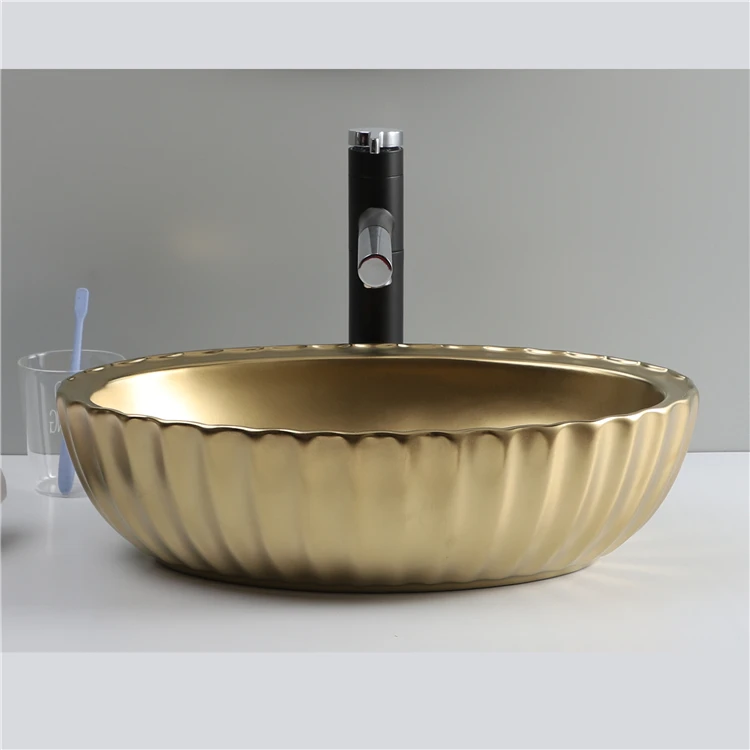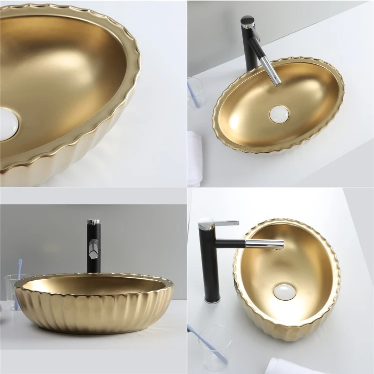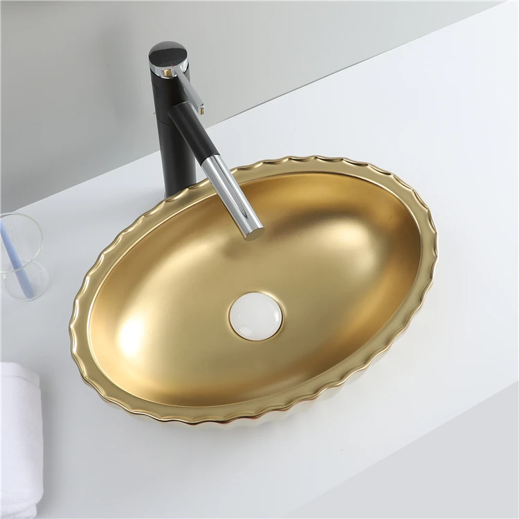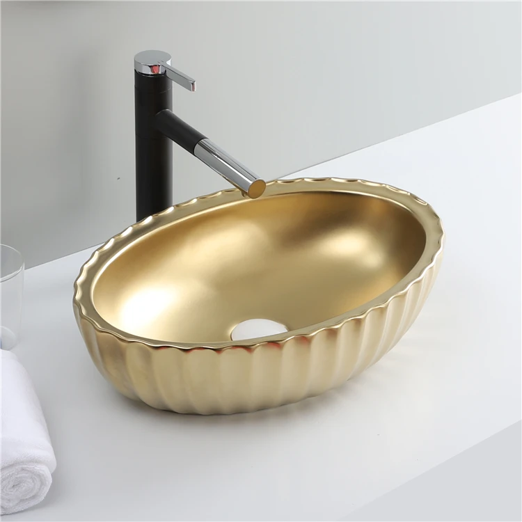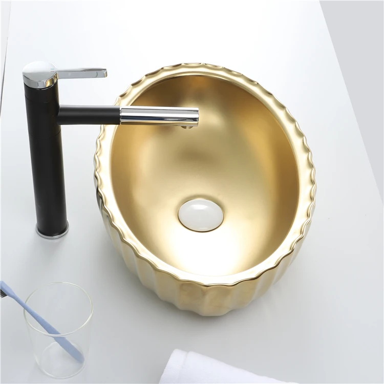 Home Bathroom Products,Sinks Wash Basin Chaozhou City Chao'an District Dengtang Town, Hengmei Ceramic Factory Good Price Luxury Matt Golden Countertop Bathroom Sinks Hand Oval Face Wash Basin