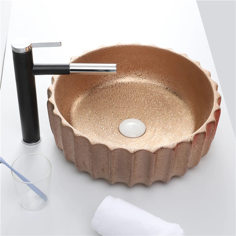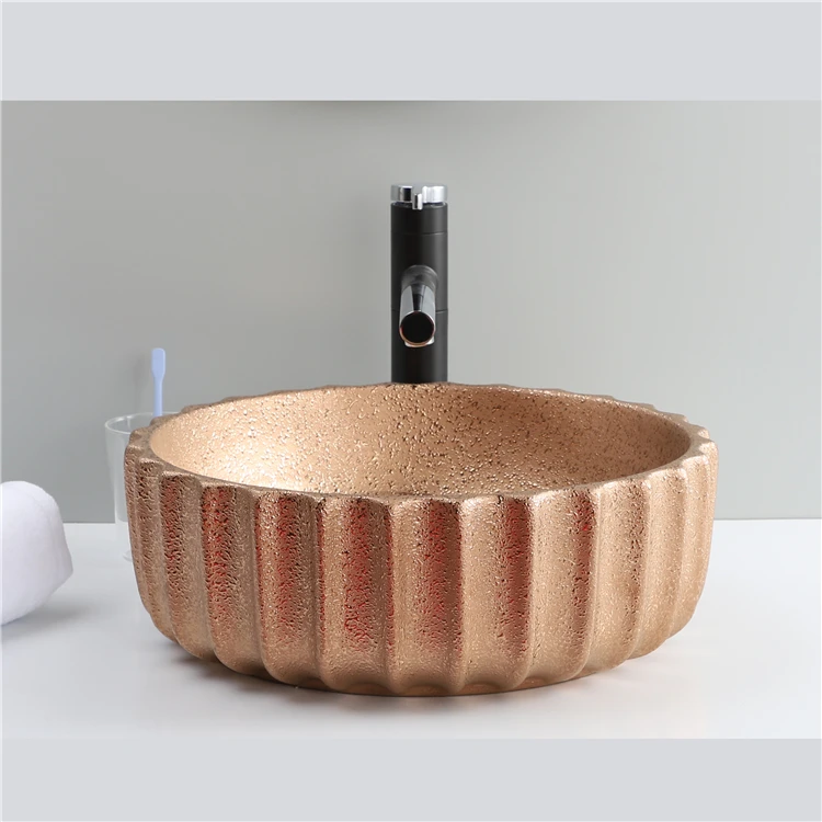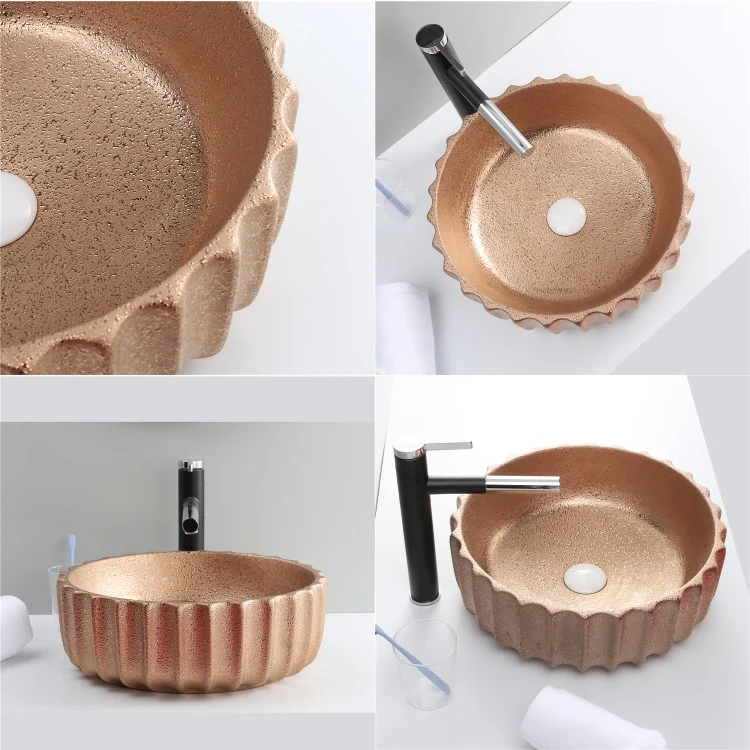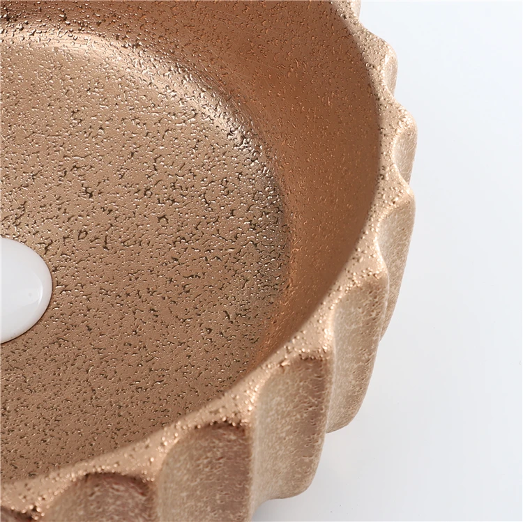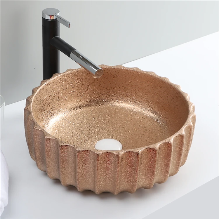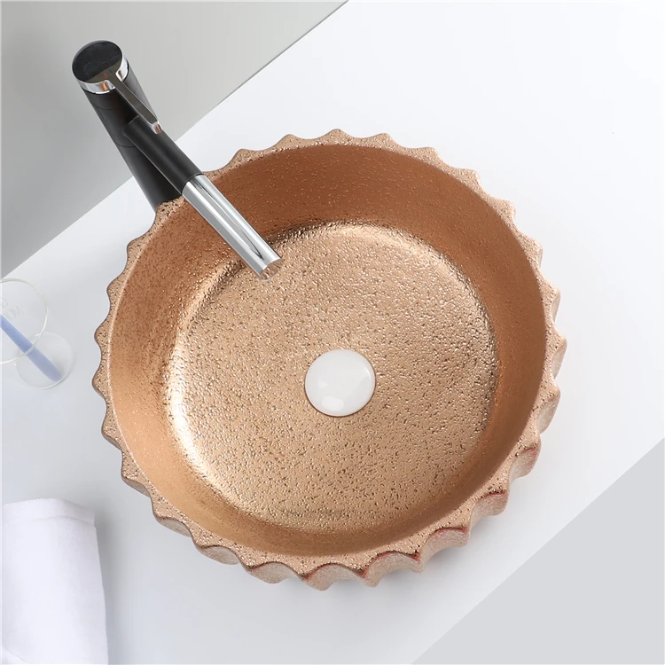 Home Bathroom Products,Sinks Wash Basin Chaozhou City Chao'an District Dengtang Town, Hengmei Ceramic Factory Hot Sale Glossy Rose Gold Countertop Laundry Bathroom Sink Wash Basin
