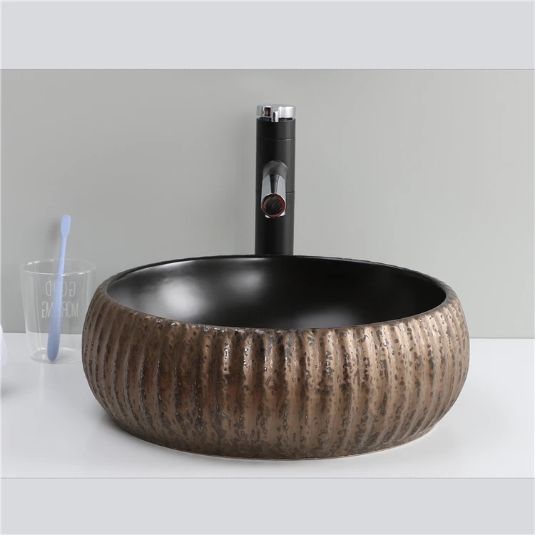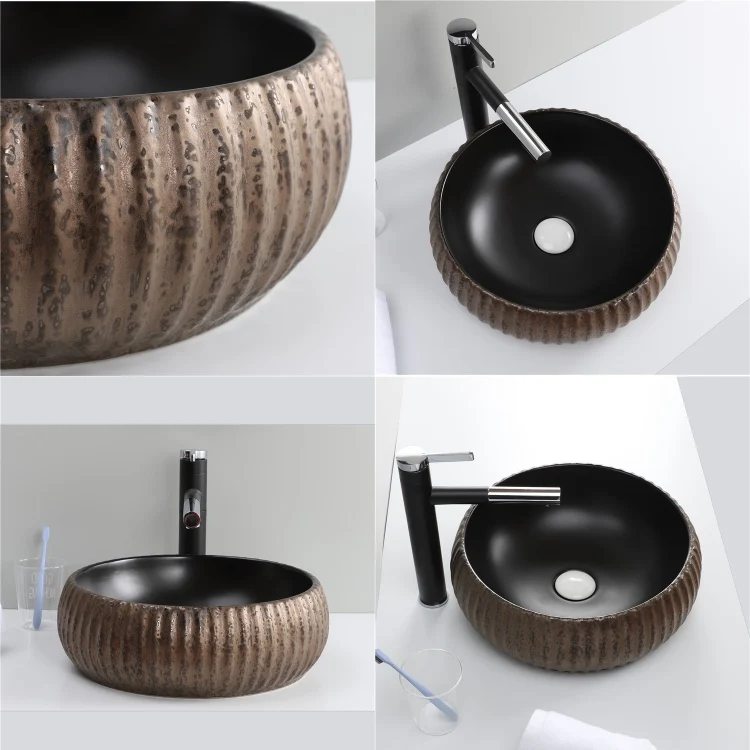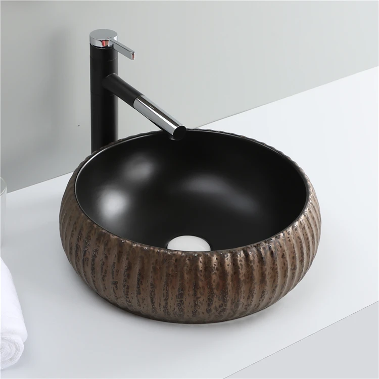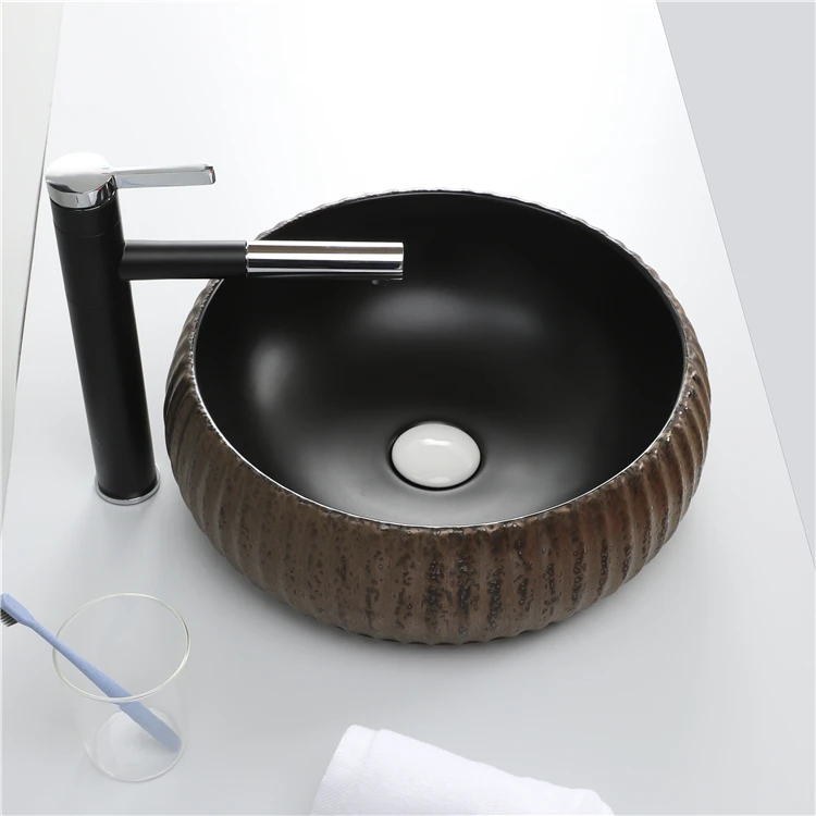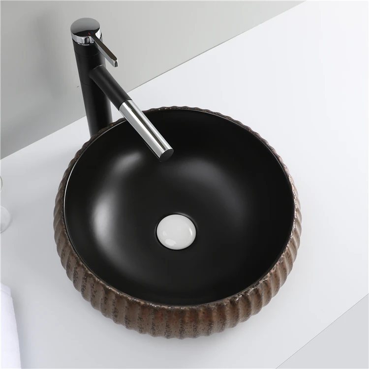 Home Bathroom Products,Sinks Wash Basin Chaozhou City Chao'an District Dengtang Town, Hengmei Ceramic Factory Special Design Round Matt Black Countertop Bathrooms Basin Unit Bath Ware Wash Basin