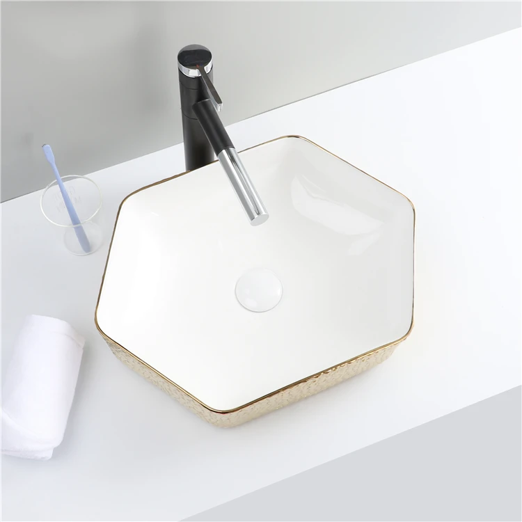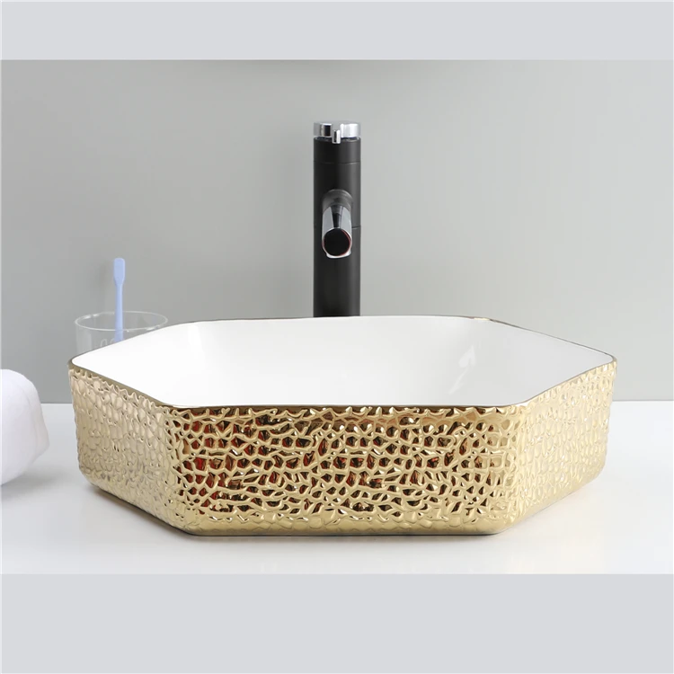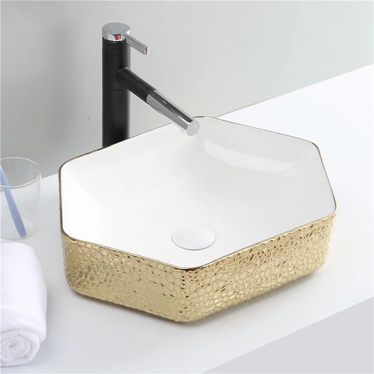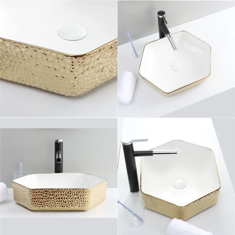 Home Bathroom Products,Sinks Wash Basin Chaozhou City Chao'an District Dengtang Town, Hengmei Ceramic Factory Popular Design Ceramic Above Counter Top Luxury Rose Gold Wash Hand Basin