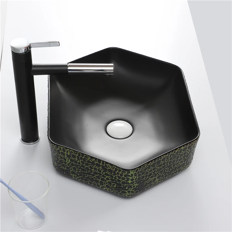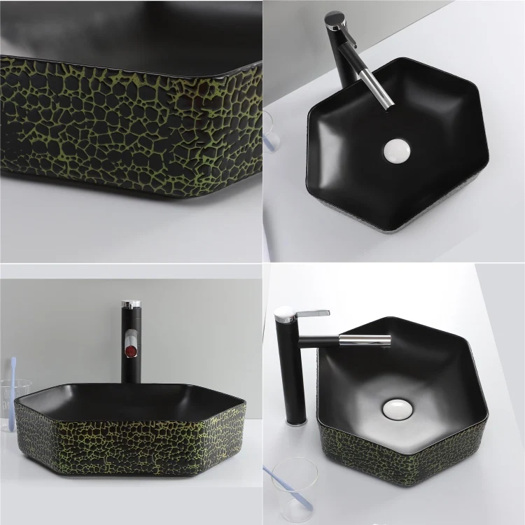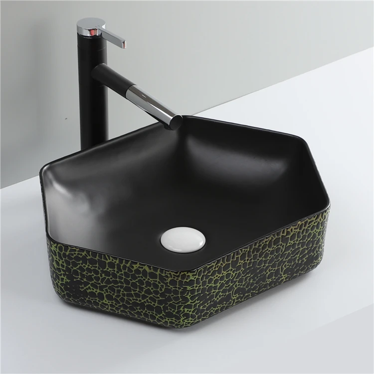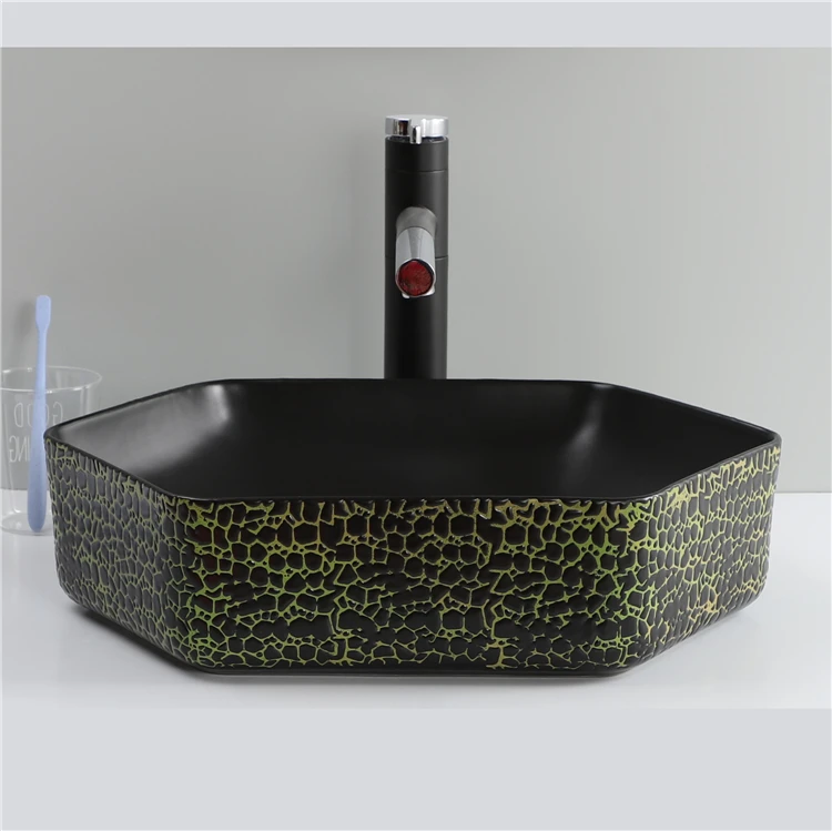 Home Bathroom Products,Sinks Wash Basin Chaozhou City Chao'an District Dengtang Town, Hengmei Ceramic Factory Cheap Price Counter Top Luxury Bathroom Matte Black Wash Sink Ceramic Art Basin