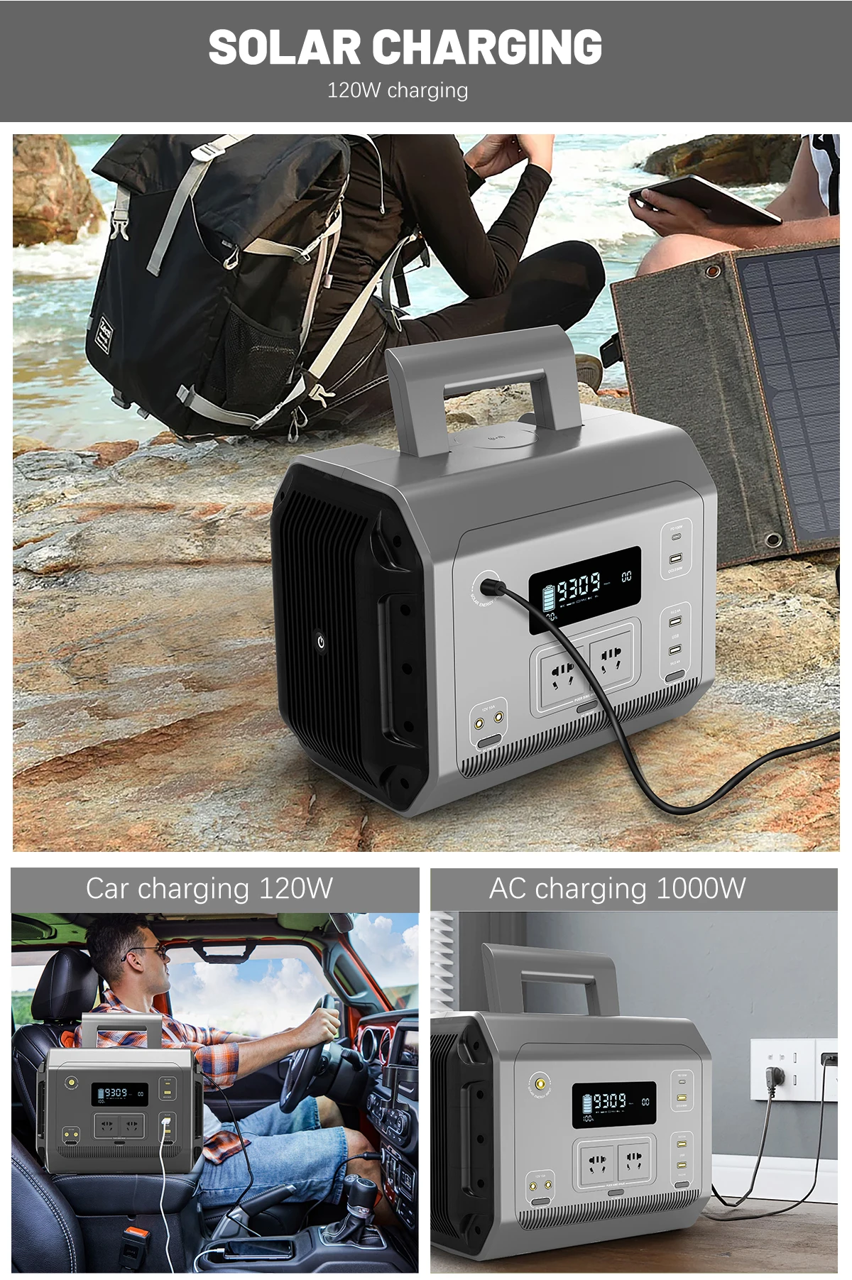 2023 new portable solar power station emergency supplies 1200wourdoor power supply for camping or hiking or touring car Charging & Power Stations fast charging inverters